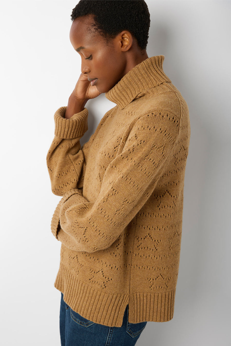 Salma Star Pointelle Roll Neck Jumper Caramel Wyse London